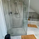 This accommodation is furnished with a work desk featuring modern facilities like a TV set. A bathroom features a bath and a shower, while a hair dryer and bath sheets are also provided.